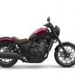 With 13.6-litres of fuel on board, the CMX1100 tips the scales at 223 kg, 233 kg if you opt for the DCT-equipped version. There are two colour options for the CMX1100 Rebel – Gunmetal Black Metallic and Bordeaux Red Metallic – with a choice between two accessory packs, ‘Street’ or ‘Tour’.